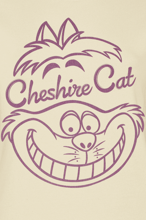 Alice in Wonderland Cheshire CatSmile T-Shirt available in sizes S, M, L, XL, XXL.
