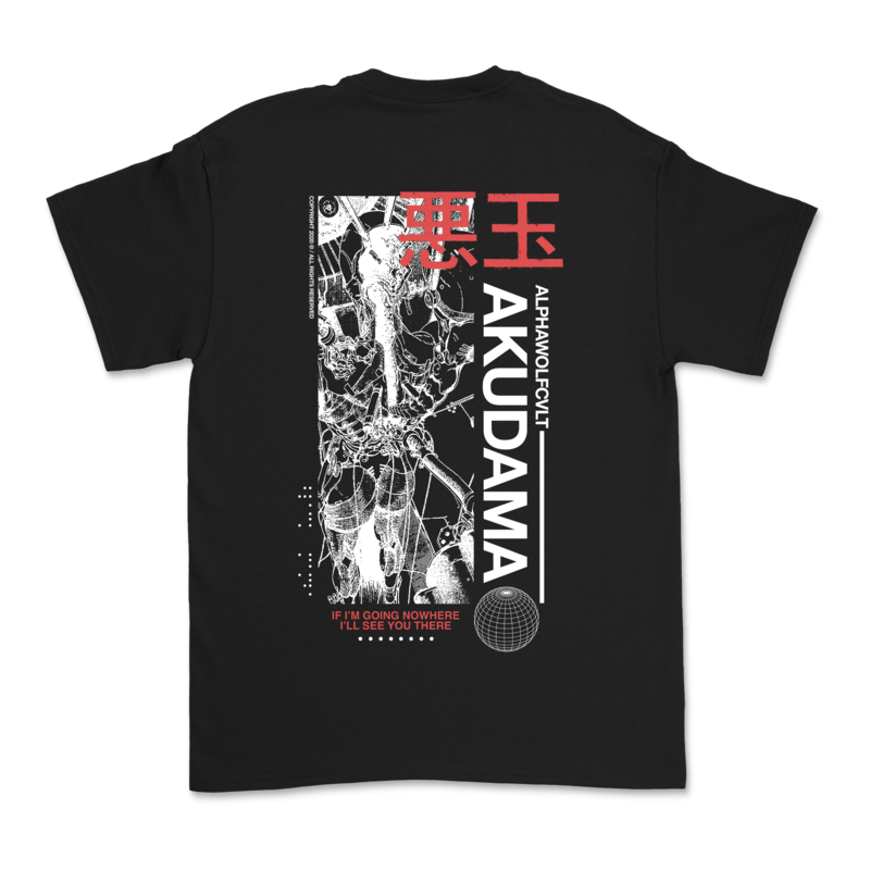 Alpha Wolf Akudama T-Shirt available in sizes S, M, L, XL, XXL, 3XL.
