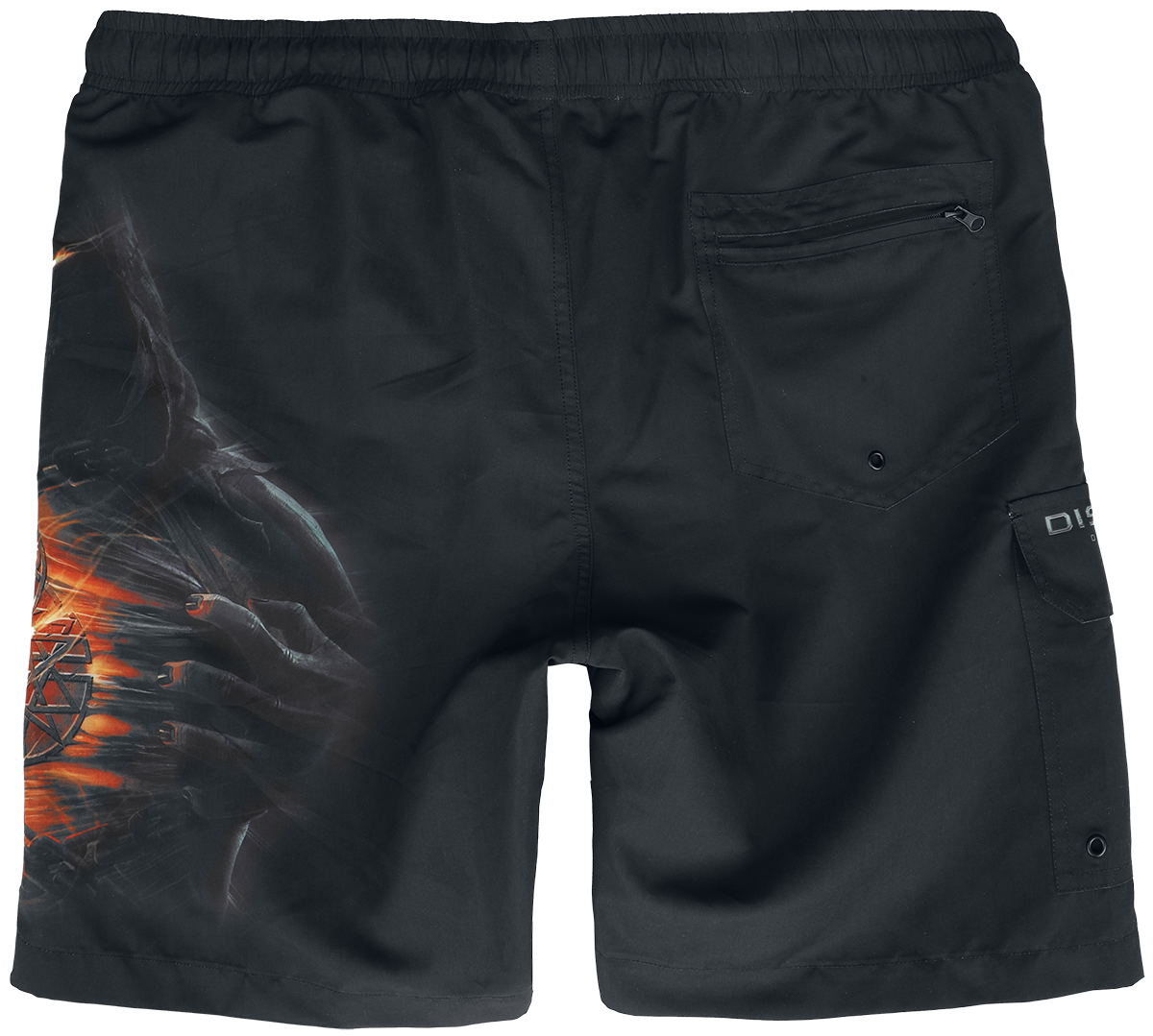Official merchandise – Disturbed EMP Signature Collection Swim Shorts for Men available in sizes M, L, XXL.