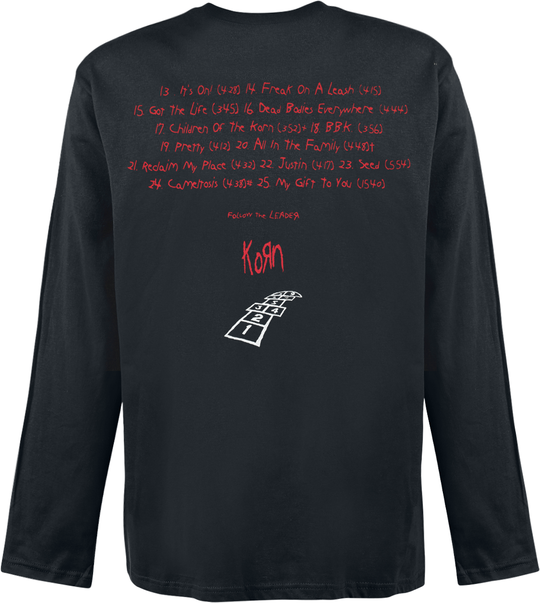 Korn Hopscotch Tracklist Long-sleeve Shirt available in sizes M.