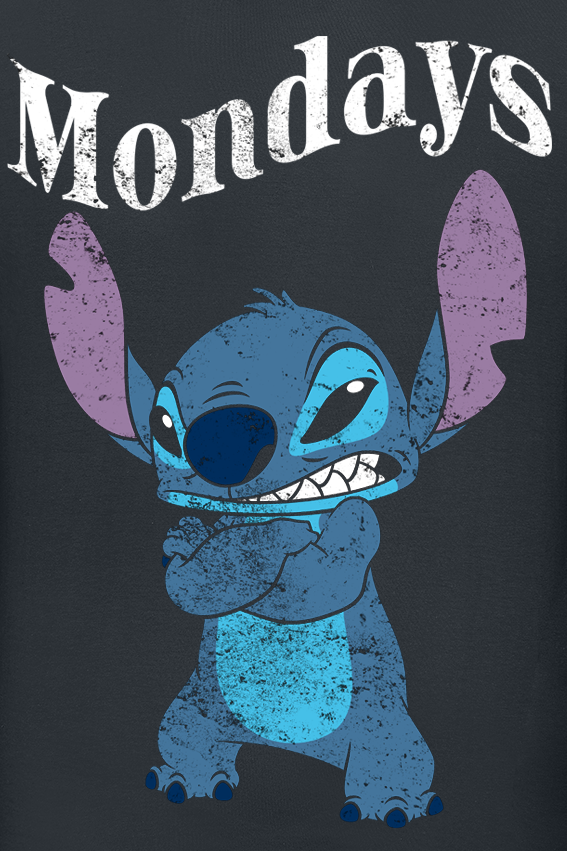 Lilo & Stitch Mondays T-Shirt available in sizes S, M, L, XL, XXL.