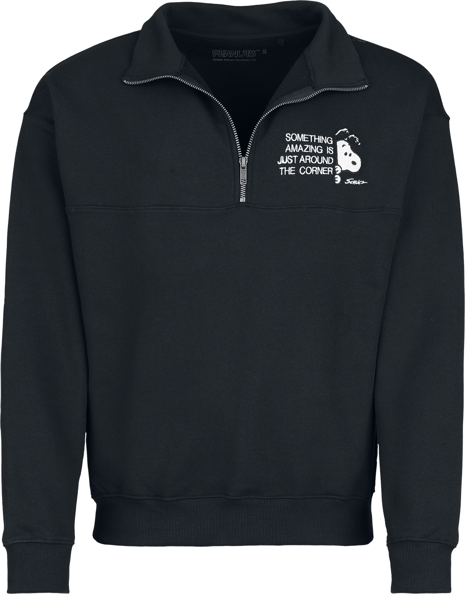 Peanuts SopySomething amazing is just around the cornerHalf-zip knitted jumper Sweatshirt available in sizes S, M, L, XL, XXL, 3XL.
