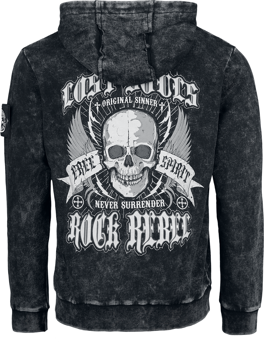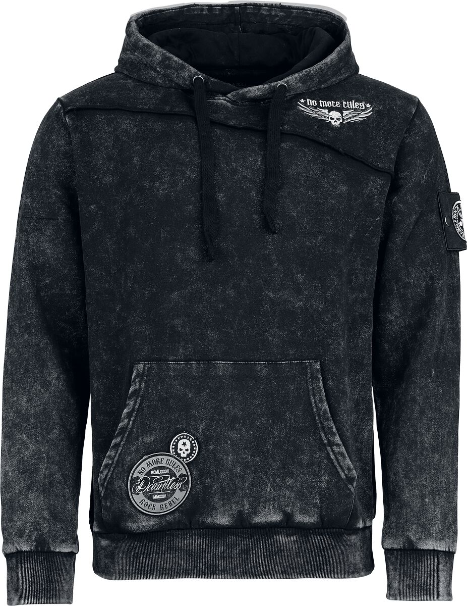 Rock Rebel by EMP Skulls & Details Hoodie available in sizes M, L, XL, XXL.