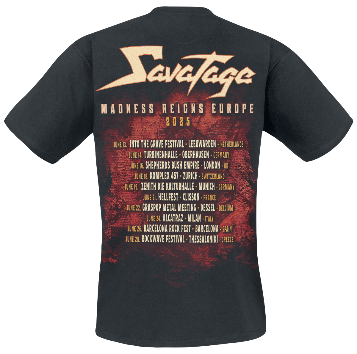 Savatage MagellanTour 2025 T-Shirt available in sizes XXL, 3XL, 4XL.