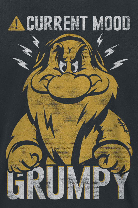 Sw White and the Seven Dwarfs Sw White and the Seven DwarfsCurrent MoodGrumpy T-Shirt available in sizes S.