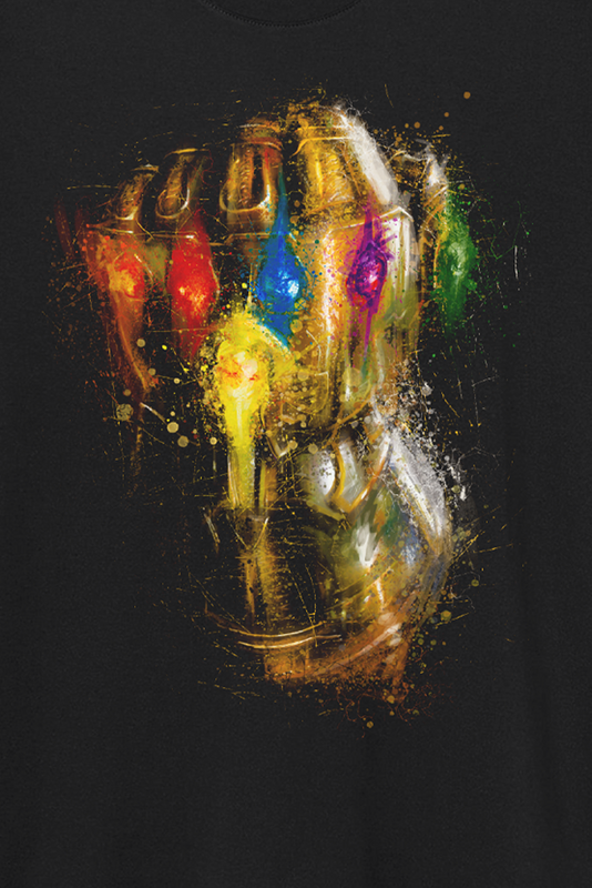 Spider-Man Destroy Gauntlet T-Shirt available in sizes S, M, L, XL, XXL.