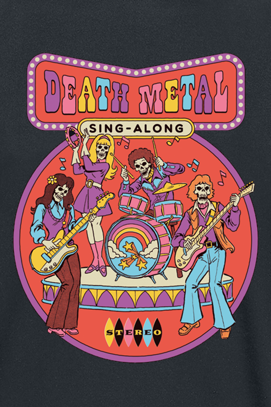 Steven Rhodes Death Metal Sing-Along T-Shirt available in sizes XL, 3XL, 4XL.