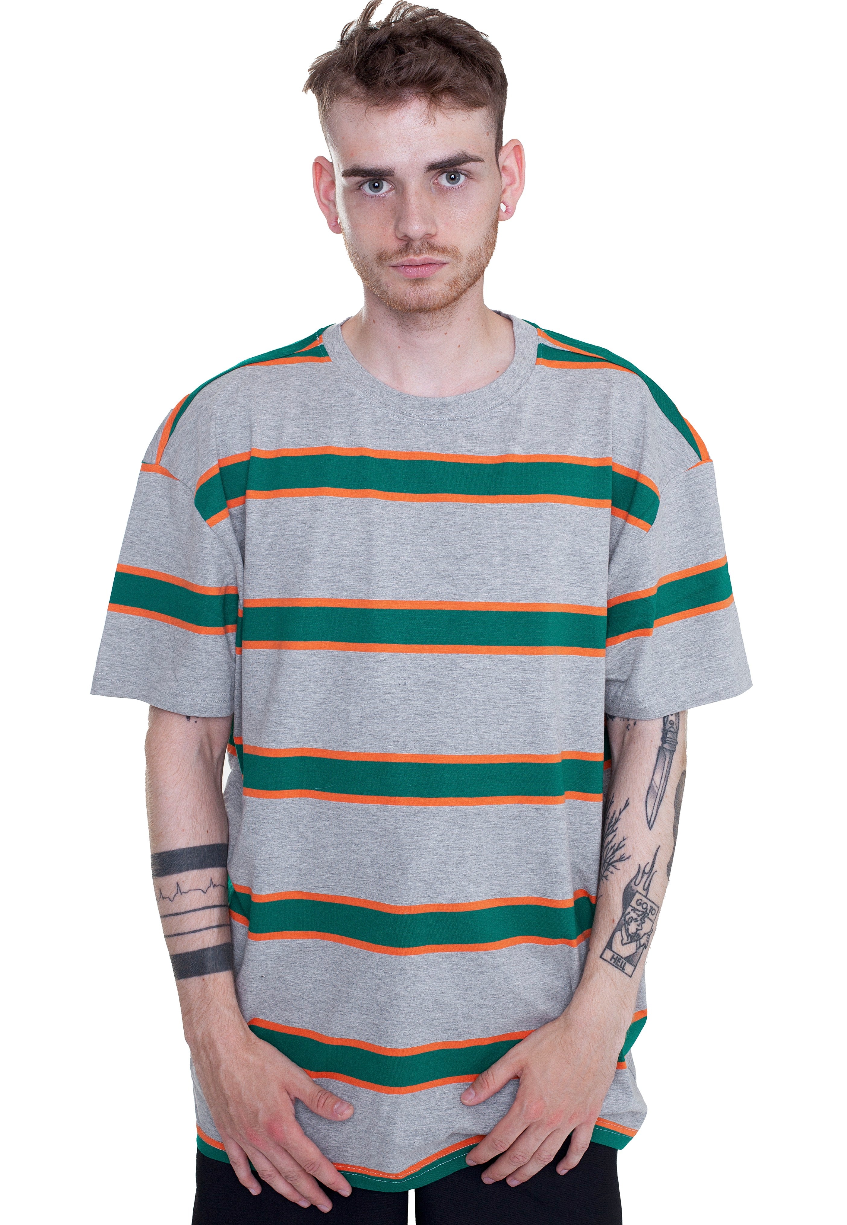 Urban Classics – Light Stripe Oversize Grey/Junglegreen – T-Shirt – grey – S – 100% Cotton,Jersey – grey – S – 100% Cotton,Jersey